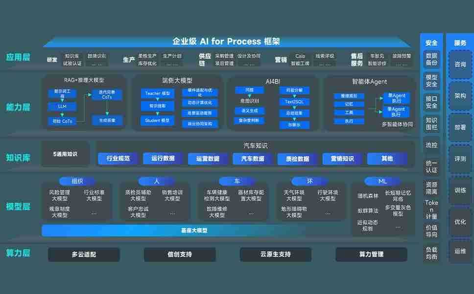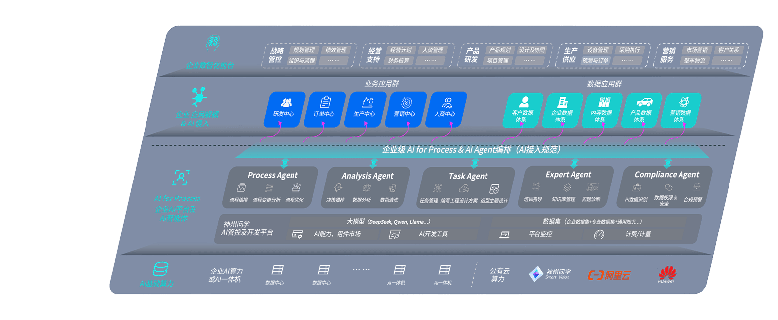 端到端的一站式AI工作空间深度融合了从企业战略规划到日常经营的全流程业务板块,,定向解决车企内部领域多、、、、部门多、、、链条长、、、场景碎片化等难题,,,支持车企快速构建以AI为核心的生产力写作体系,,实现任务执行与AI能力的无缝集成与交互